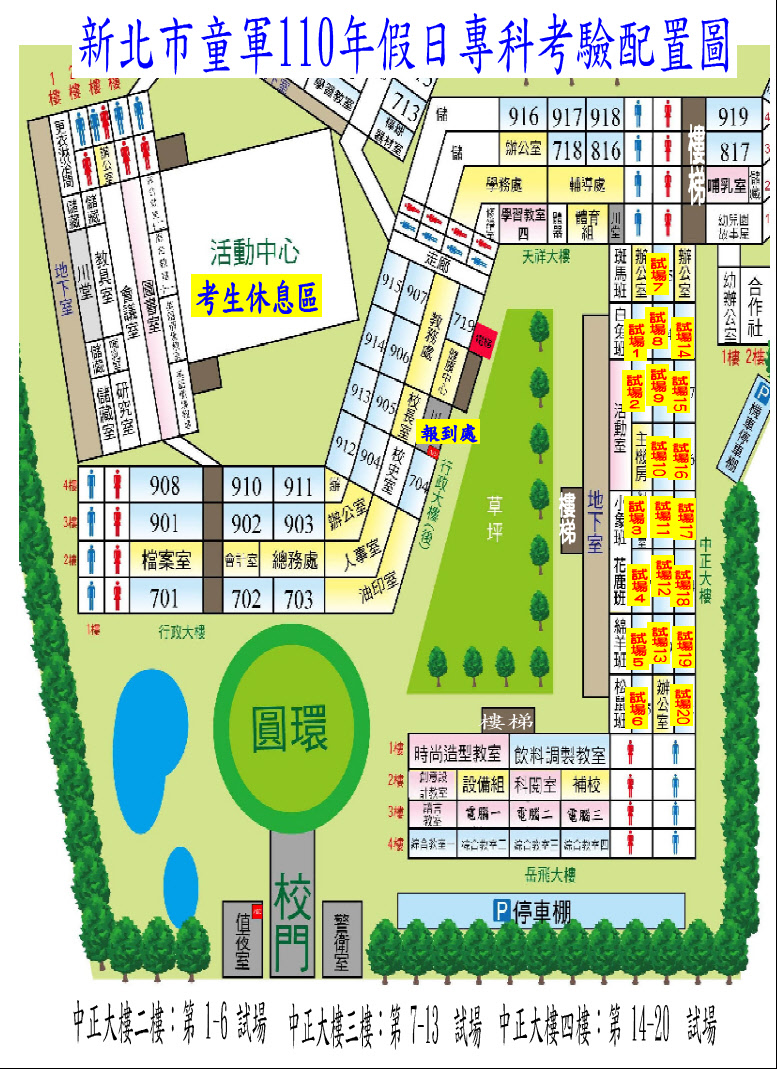 新北市110年度童軍假日專科考驗考生畫卡班號及考場一覽表如附件